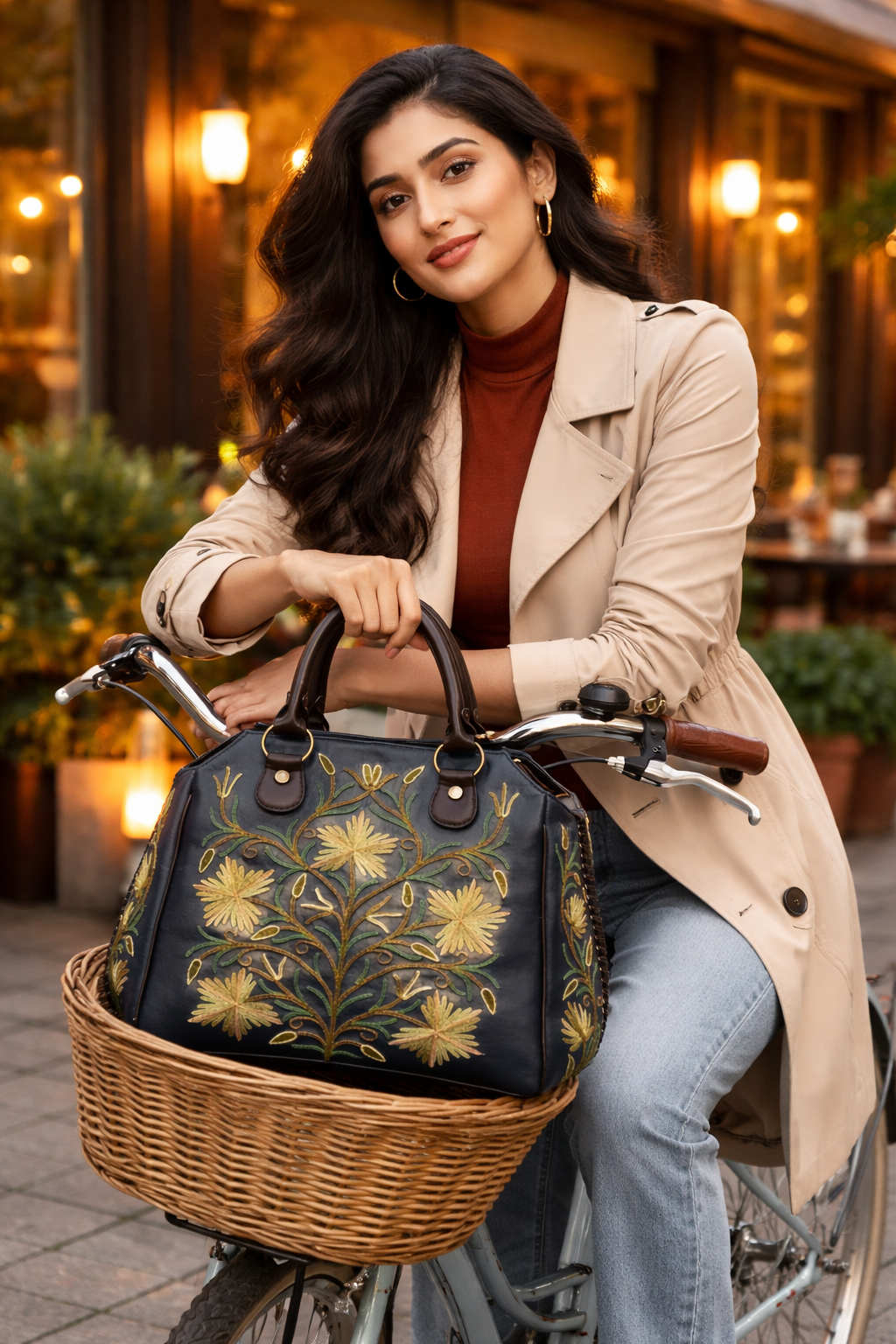 Kashmiri Handcrafted Embroidered Leather Bag This exquisite Kashmiri handcrafted leather bag showcases...